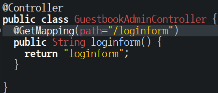 @GetMapping(path="/loginform") public String loginform() { return "loginform"; }
