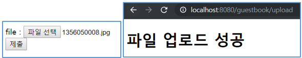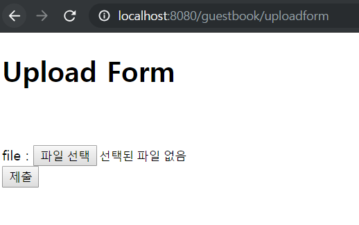 - 위와 같은 내용이 작성이 되었다면, 서버를 실행시켜 http://localhost:8080/guestbook/uploadform 을 웹 브라우저로 엽니다.